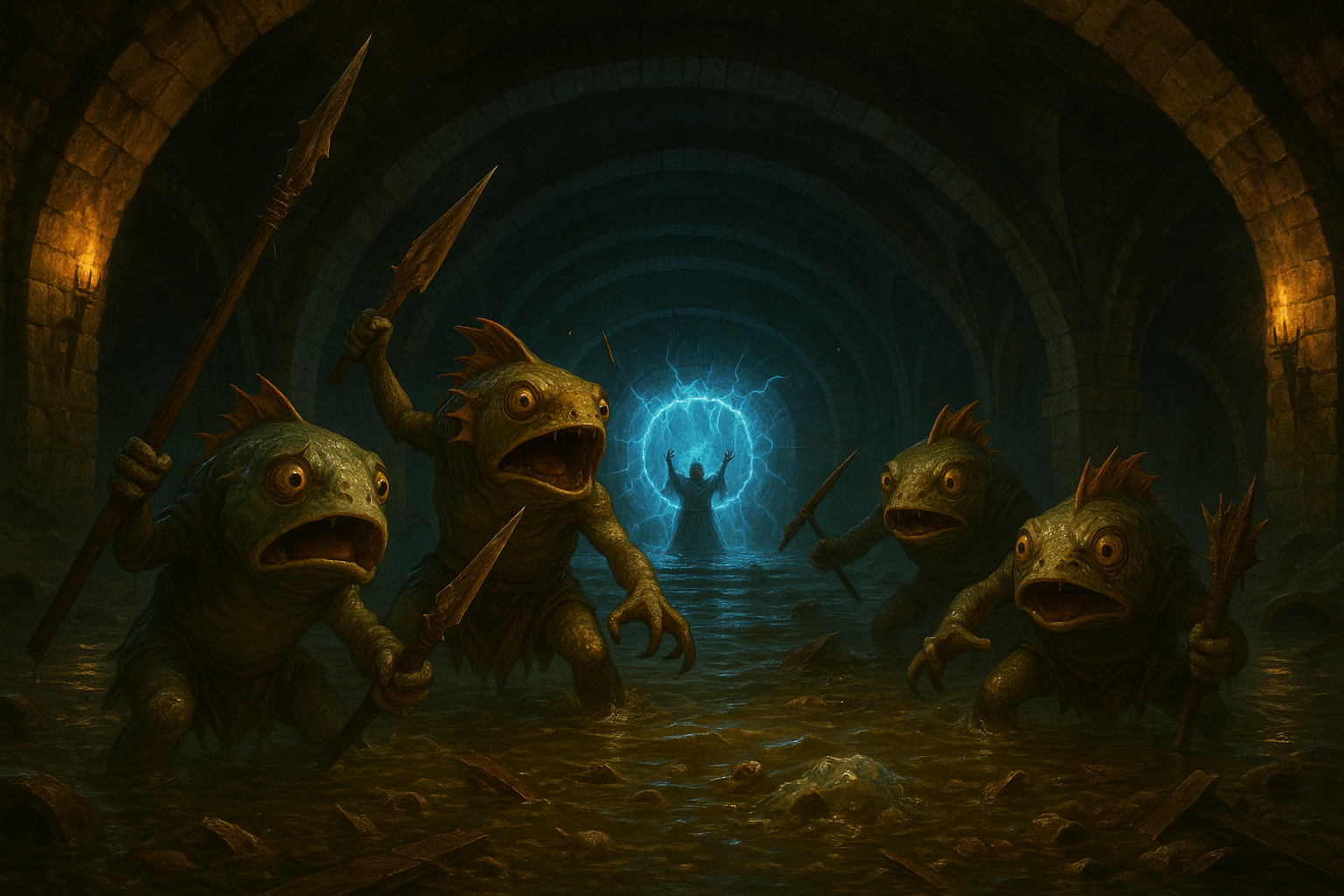 Tief unter der schimmernden Oberfläche der Welt, in den endlosen Fluten der elementaren Ebene des Wassers, lag die Stadt wie ein ertrunkener Gedanke. Die Gebäude bestanden aus schimmernden Muschelkalkbögen und Wasser floss durch alles hindurch. Die Gruppe hatte hier nie bleiben wollen – zumindest nicht lange. Vielleicht eine Rast. Ein Handel oder zwei. Stattdessen waren