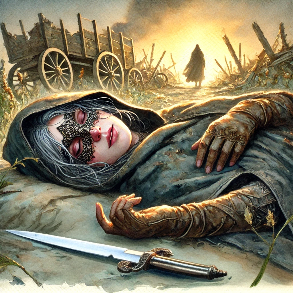 Doch ihr Ende war ebenso still wie ihre Taten, als sie reglos zwischen den Trümmern lag, ihre zerbrochene Maske das einzige Zeugnis eines kurzen Moments der Menschlichkeit inmitten der Dunkelheit.