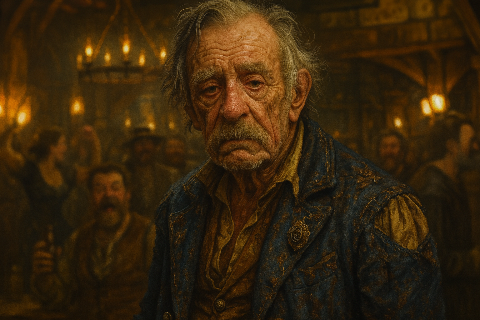 Die Taverne war ein Traum aus Licht, Lachen und warmer Luft. Kerzen flackerten auf jeder Tischplatte, Musik spielte irgendwo im Hintergrund, Gläser klirrten, Stimmen schwollen zu einem lebhaften Teppich aus Geschichten und Freude. Finn trat ein – und für einen Moment fühlte es sich an, als würde die Welt ihn erkennen. „Ist das nicht…?“ flüsterte