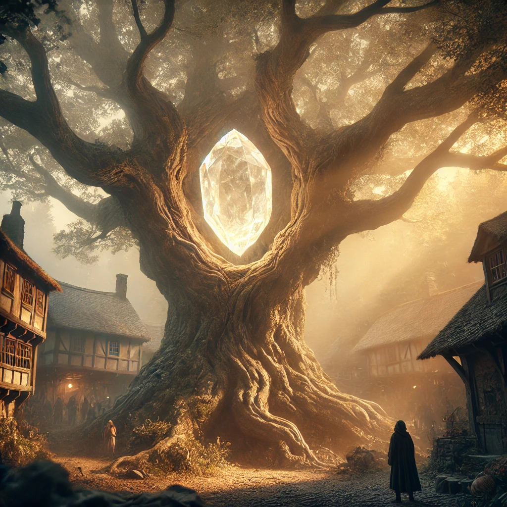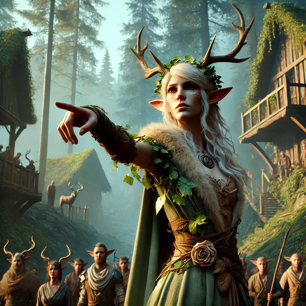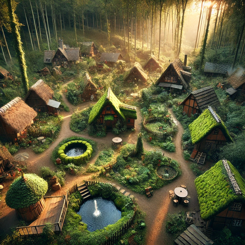 Ein neuer Morgen in Eldryn Die Morgensonne brach zaghaft durch die Nebel des Waldes, als sich das Dorf langsam mit dem Leben der Erwachten füllte. Das unheilvolle Schweigen war einem Chor aus Vogelgezwitscher und gedämpften Stimmen gewichen. Eldryn saß auf einer schlichten Bank vor seinem Haus, das Gesicht der Sonne zugewandt. Seine Haltung war entspannt,