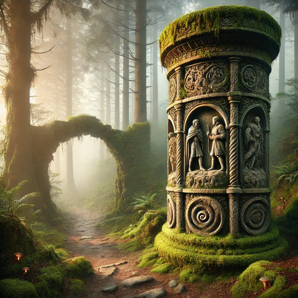 Vor ihnen ragte eine Steinsäule aus dem Boden, rund, vom Wetter gezeichnet, aber noch voller Geschichte. Die Helden hatten sie beim ersten Licht des Morgens entdeckt, am Anfang jenes Weges, der auf ihrer Karte als „Fadenbruchpfad“ markiert war.