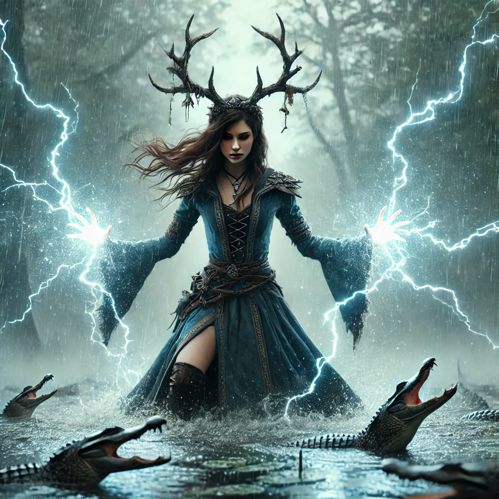 Der Donnerknall zerriss die Luft. Die Wucht der Magie schleuderte zwei der Sumpfhunde durch den Morast, während einer der riesigen Blutegel regelrecht zerplatzte – ein widerlicher Schwall dunkelroter Flüssigkeit spritzte in den Sumpf.