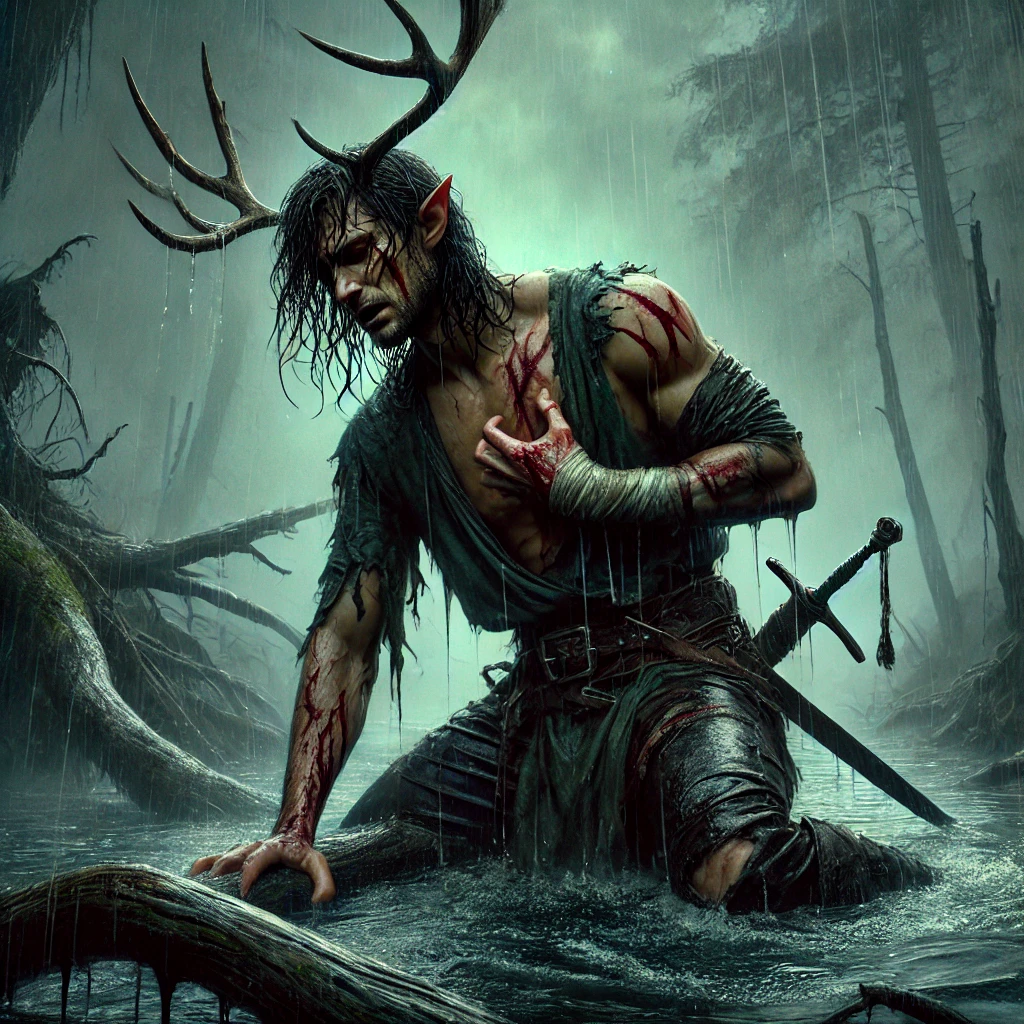 Der letzte Sumpfhund, verletzt und nun ohne Rudel, zog sich mit einem drohenden Knurren ins Unterholz zurück.