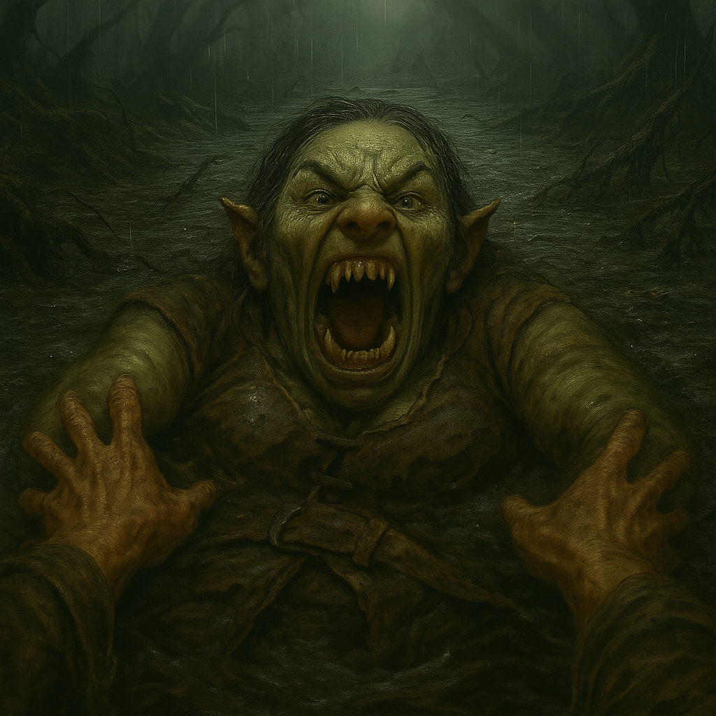 Der Himmel war grau, zäh wie erkaltete Suppe. Nebel kroch zwischen den knorrigen Bäumen, die sich wie erschöpfte Riesen über das Land beugten. Kleschbumtauch stand knietief im Sumpf. Wieder. Der modrige Geruch des Torfs, das gluckernde Geräusch jedes Schrittes, das dumpfe, unnachgiebige Ziehen des Morasts – alles war wie früher. Oder… nein. Nicht wie früher. Schlimmer.