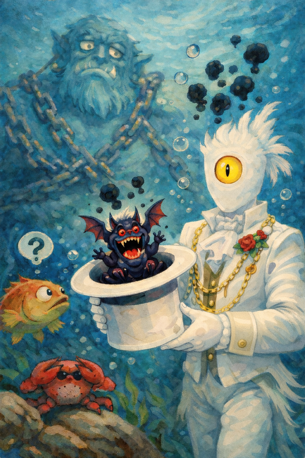 Die Tiefe lag schwer um sie, während Morvath Tiefenhall reglos im Wasser hing, gehalten von sechs Schicksalen aus schwarzem Metall.