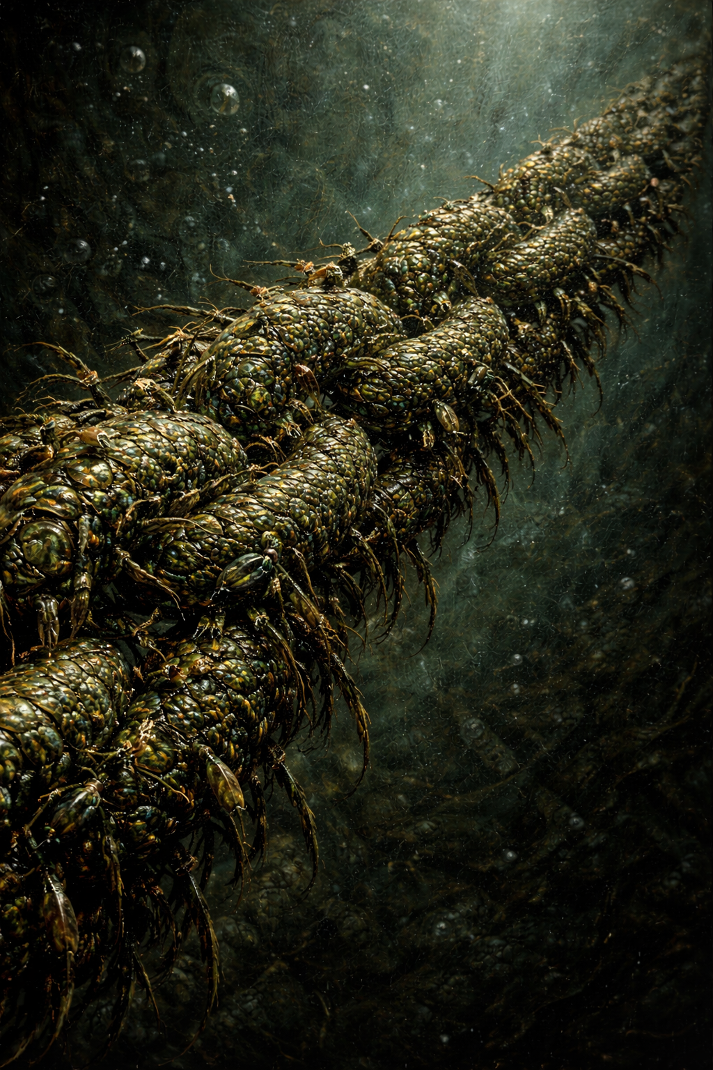 Die fünfte umschlang seinen linken Arm. Kleine, blasse Organismen hafteten an ihr, pulsierend, träge. Das Wasser dort war leicht getrübt.