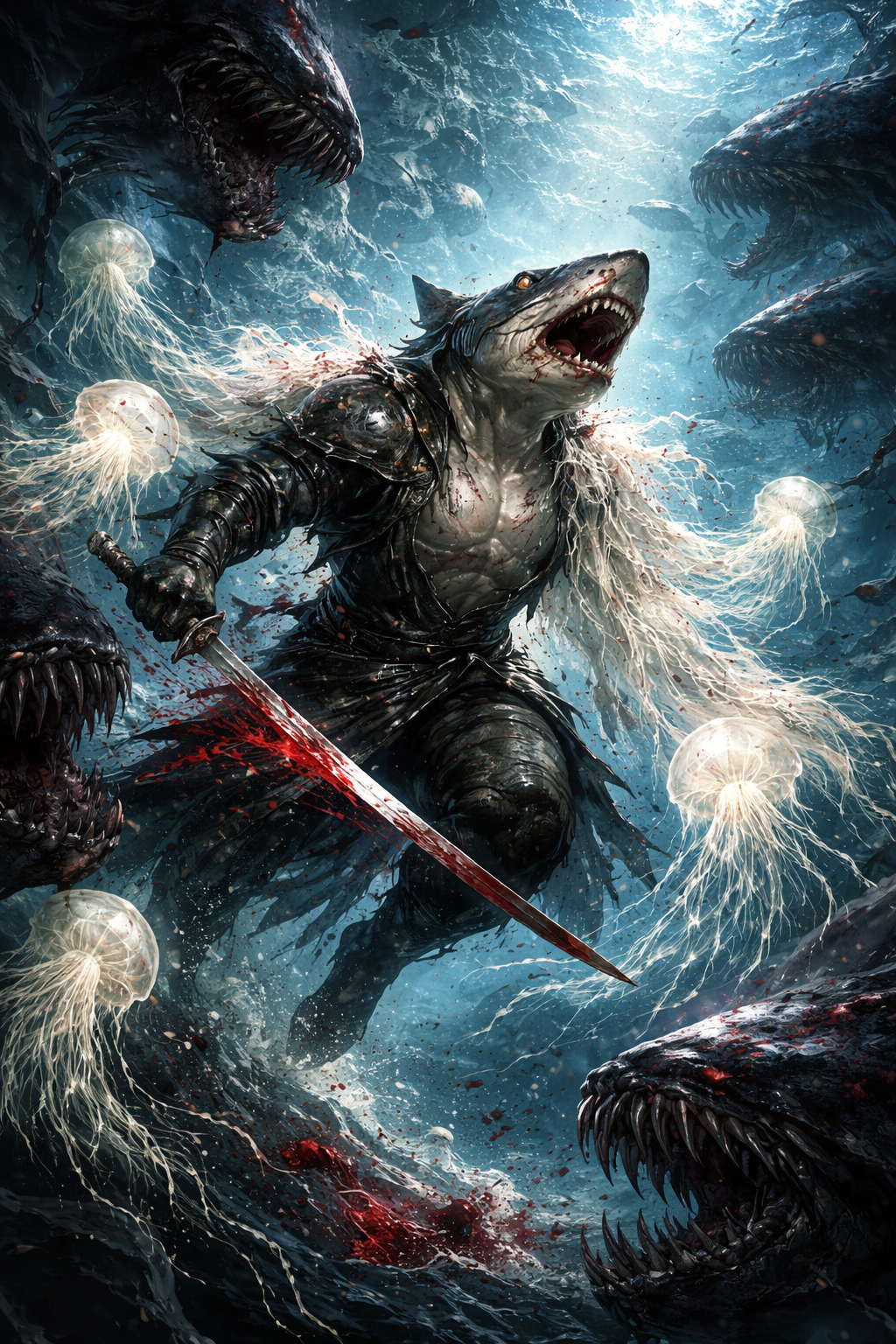 Eine gewaltige Gestalt schwebte aufrecht im offenen Wasser. Kein Boden unter seinen Füßen. Kein Fels hinter seinem Rücken. Nur endlose Schwärze.