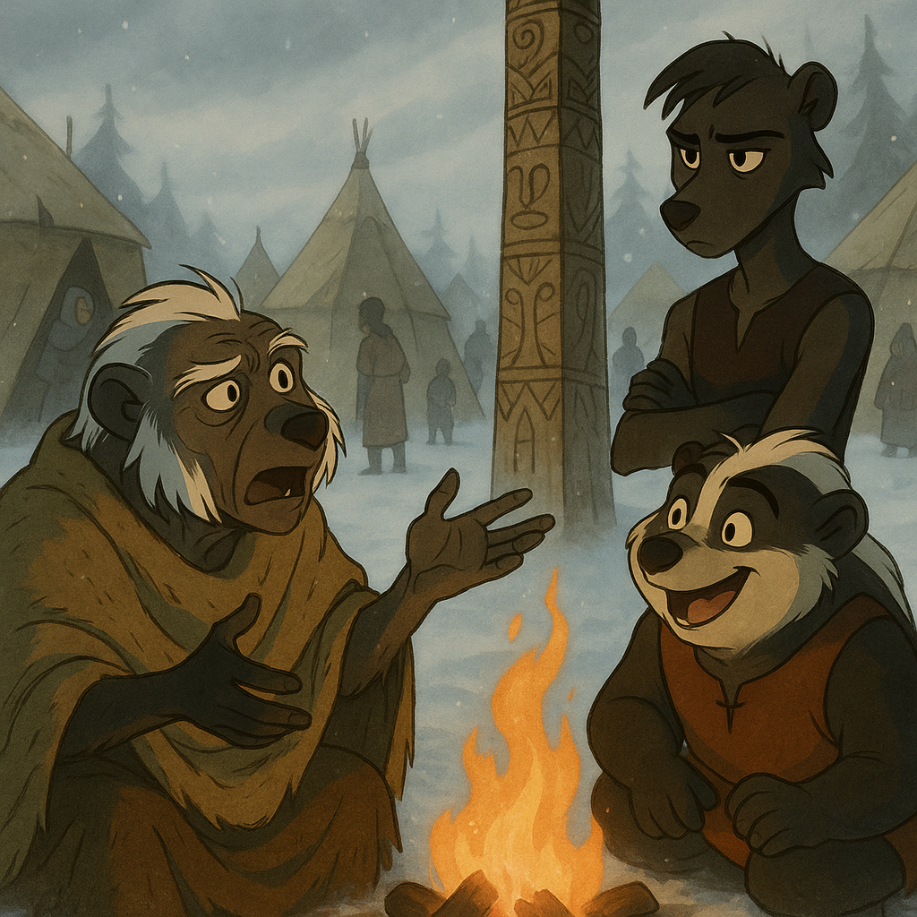 Der Totempfahl war höher, als er in Erinnerung hatte. Rutschiger. Seine Hände, rau und klamm, fanden kaum Halt an der gefrorenen Oberfläche. Er stemmte sich hoch, Zentimeter für Zentimeter – keuchend, mit zusammengebissenen Zähnen, während seine Knie zitterten wie Bäume im Sturm. Sehr schmächtige Bäume.